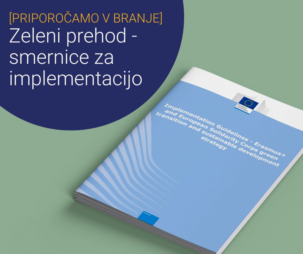 Na CMEPIUS-u smo v letu 2021 izdali publikacijo Zeleni Erasmus+ – priročnik za implementacijo okolju prijaznih praks v projektih programa Erasmus+ na področju izobraževanja in usposabljanja, ki vam bo v veliko pomoč pri pripravi vaših zelenih projektov. Na voljo tukaj, skupaj z letakom Priporočila udeležencem za bolj zelene mobilnosti v okviru programa Erasmus+ v slovenščini in angleščini.